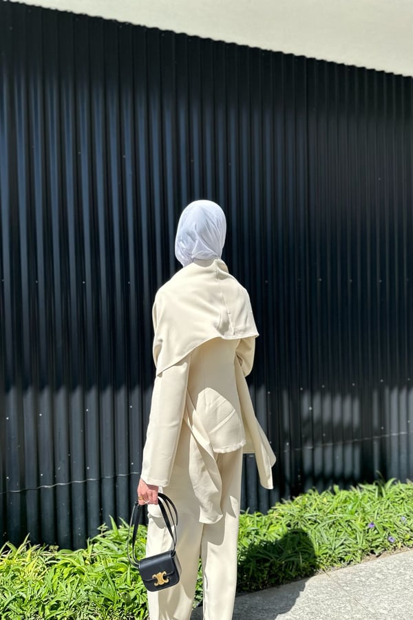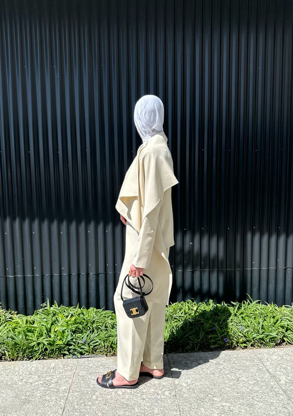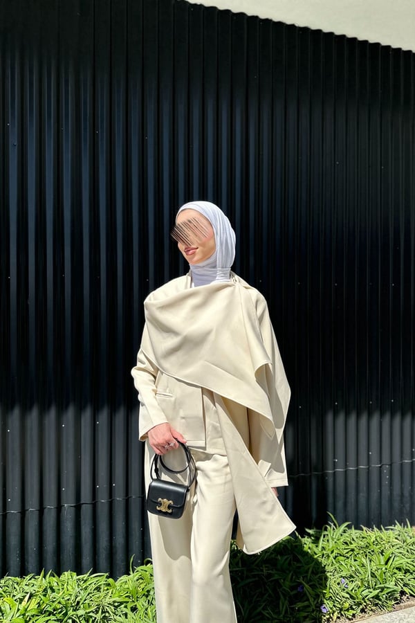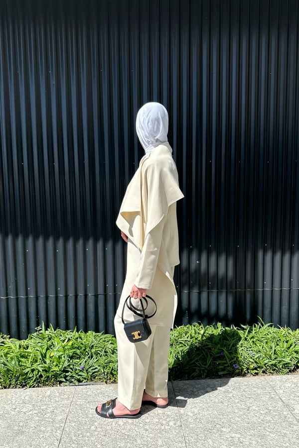 choose the size from the size table , taking into account the required length of the jacket , and pant. Fabric name : crape model blazer length :25.5 high waist pant